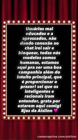 Aislinn Desconectada Enviar mensagem Avisar Quando Online Denunciar Cancelar Grata pela compreensão 🩷 1 0:05 2 curtidas há 2d Postar