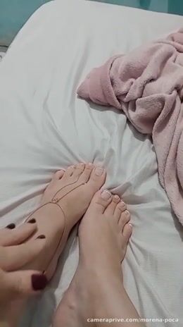 Opening my pussy and ass and playing with my feet, so you came to suck me all over #little feet
